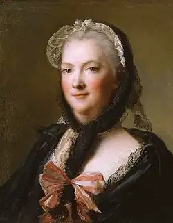 Upon his death in 1928, the Duke made a bequest of ten paintings to the Prado Museum, including Young Man with a Feather Hat, by Pieter Hermansz Verelst (which was then attributed to Godfried Schalcken), a male portrait considered the work of Carlo Ceresa (then believed to be by Velázquez), and a portrait of Queen Marie Leszczyńska by Jean-Marc Nattier. As the Duke stipulated that his wife keep them in usufruct until his death, the donation did not become effective until the Duchess of Arcos died at Palazzo Brancaccio, her home in Rome, on 13 March 1935.[20] The legacy was then officially accepted by the government of the Second Republic, and the works entered the Prado collections. The Duchess left a large collection of pictures, and fans,[21] to the National Gallery in Washington and a number of pictures, including works by Henry Raeburn, Lebruns, and Greuzes (as well as Portrait of a Princess of France as Diana by Philippe Vignon), to the Prado.[19]