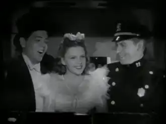 MGM hit a winning formula when it paired Garland with Mickey Rooney in a string of what were known as "backyard musicals".[32] The duo first appeared together as supporting characters in the B movie Thoroughbreds Don't Cry (1937). Garland was then cast in the fourth of the Hardy Family movies, Love Finds Andy Hardy (1938), as a literal girl-next-door to Rooney's character Andy Hardy, although Hardy's love interest was played by Lana Turner. They teamed as lead characters for the first time in Babes in Arms (1939), ultimately appearing in five additional films, including Hardy films Andy Hardy Meets Debutante (1940) and Life Begins for Andy Hardy (1941).