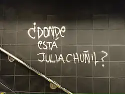 Graffiti in a Santiago Metro station, asking where Julia Chuñil is (2025).