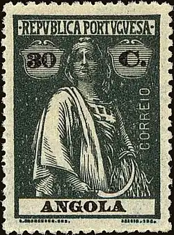 Three stamps of the Portuguese Ceres series issued for the colonies of Angola, Mozambique and Inhambane