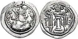 As per an arrangement between the Byzantines and the Arab tribes dwelling along its Syrian Desert frontiers in 502 CE, the Kinda under al-Harith (called Arethas in the Byzantine sources) and their Ghassanid rivals had become federates of the empire.[12] The Byzantines were prompted into this arrangement after al-Harith's sons Hujr and Ma'di-Karib launched an assault on the border region between the Byzantine Levant and Arabia.[6] This may have been associated with the Day of al-Baradan, referred to in the Arabic sources, which was a battle most likely at a spring in the vast Samawah (the part of the Syrian Desert between Syria and southern Iraq).[13] In that engagement the Kinda were confronted by the Salihids, the Byzantines' principal Arab federates throughout the 5th century. After initial Salihid successes, the battle turned in favor of the Kinda and the Salihid phylarch (tribal client king) Ziyad ibn al-Habula was slain.[14] While the Arabic sources place Hujr as the head of the Kindite forces,[14] Shahid asserts it was a likely confusion with Hujr's eponymous great-grandson Hujr ibn al-Harith, the elder Hujr having already died.[15]