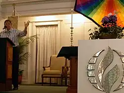 Yet, in 2016, the New York Annual Conference ordained the United Methodist Church's first openly gay and lesbian clergy.[37] In July 2016, the Western Jurisdiction of the United Methodist Church consecrated the denomination's first openly gay and married bishop, Karen Oliveto.[38]