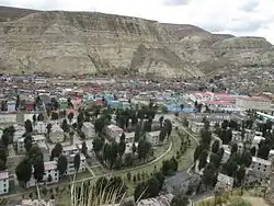 La Oroya is a city on the River Mantaro and capital of the Yauli Province, located in the Department of Junin in central Peru.[2] It is situated on the eastern watershed of the Andes at an altitude of 3,745 m, some 176 km east-north-east of the national capital, Lima. La Oroya is the location of a smelting operation that earned the town a place on the Blacksmith Institute's 2007 report on "The World's Worst Polluted Places".[3] It is also the eastern endpoint of the Central Highway of Peru (Carretera Central).