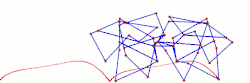 A leg mechanism (walking mechanism) is a mechanical system designed to provide a propulsive force by intermittent frictional contact with the ground. This is in contrast with wheels or continuous tracks which are intended to maintain continuous frictional contact with the ground. Mechanical legs are linkages that can have one or more actuators, and can perform simple planar or complex motion. Compared to a wheel, a leg mechanism is potentially better fitted to uneven terrain, as it can step over obstacles.[1]