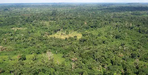Tropical rainforests cover the hills, while elephant grass and semi-deciduous forests make up the dominant vegetation in the northern sections.[88]