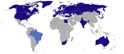 Before June 1940, Lithuania had gold reserves in the United States (Federal Reserve), United Kingdom (Bank of England), France (Banque de France), Sweden (Sveriges Riksbank), and Switzerland (Bank for International Settlements).[21] Sweden transferred the funds to the Soviet Union. Initially, England froze the reserves and refused to transfer it to either Lithuanian diplomats or the Soviet Union;[18] however, in 1967, the First Wilson ministry used the reserve in settling mutual claims with the Soviet Union.[22] Swiss bank secrecy laws prevented the transfer of the gold to Lithuanian diplomats.[23] Reserves in France were similarly not available. Thus only the funds held by the Federal Reserve were available: 2,493.61 kilograms (80,171 ozt) of gold reserve and a currency reserve.[18][24][25]