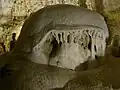 Marble Caves (Russian: Мра́морная пещера, Ukrainian: Мармурова печера, Crimean Tatar: Mermer qobası, Мермер къобасы) is a cave in Crimea, at the lower plateau of Chatyr-Dag, a mountainous massif. It is a popular tourist attraction and one of the most visited caves in Europe.