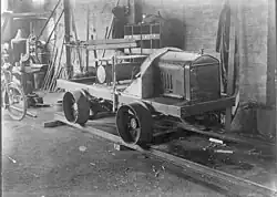 A gala day was held on 15 June 1922 at Marrawah on the occasion of the opening of the steel railway line to within a mile of the township.[15] The branches, however, stayed private property and were operated by the proprietors with their own, sometimes unusual rolling stock. One of the most peculiar locomotives was Harlot a converted Ransomes, Sims & Jefferies steam lorry. Special permission had to be given to drive it to Salmon River on the Marrawah Tramway and extra care was taken due to the type of wheels on the engine but it reached its destination without any serious damage. The journey took a whole day.[16]