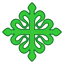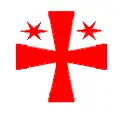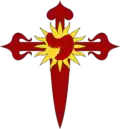 Originally an "association" of knights who guarded the Church of the Holy Sepulchre under the jurisdiction of the kings of Jerusalem. In 1113, they became consubstantial with the Canons of the Holy Sepulchre after their recognition by Pope Paschal II, as a military branch, Militi Sancti Sepulcri; after 1291, the Knighthood was awarded to prominent pilgrims by the Custos of the Holy Land.[9] Reorganised as Sacred and Military Order of the Holy Sepulchre in 1496 by Pope Alexander VI. Reorganised by Pope Pius IX with the residential restoration of the Latin Patriarchate of Jerusalem in 1847.[10] Known as the Equestrian Order of the Holy Sepulchre of Jerusalem since 1931. | |