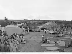 Mintaro slate is produced from what is believed to be the oldest continuing operating quarry in Australia.[29][30] The slate was discovered in the early 1850s by a local farmer. In 1856 an English stonemason, Thompson Priest, leased the slate bearing area adjacent to the site of the original discovery and mining began in 1856.[31] Cornish Methodist miners were brought from England for this purpose.[19][31] The open-cut quarry is located about 1.5 km west of the township.