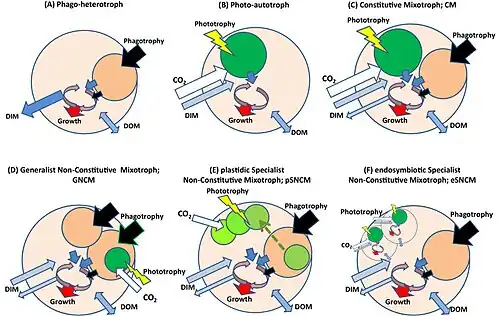 Several categorization schemes have been suggested to characterize sub-domains within mixotrophy.