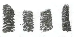 - Moccasin Bluff impressed exterior lip (56 vessels), characterized by distinctive rim and lip treatments, divided into 2 sub-groups.[3] Time period: prehistoric. Cultural affiliation: Late Woodland.