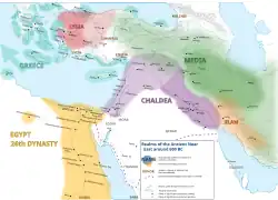 In the middle of the seventh century BC, the Neo-Assyrian Empire ruled the entire Near East. Due to their powerful standing army and their sophisticated administration, the Assyrians had managed to create the best organized and largest empire that the world had yet seen.[19] Though Babylonia in the south had also once been a large kingdom, it had typically been weaker than its northern neighbor due to internal divisions and the lack of a well-organized army. The population of Babylonia was divided into various ethnic groups with different priorities and ideals. Though old native Babylonians ruled most of the cities, such as Kish, Ur, Uruk, Borsippa, Nippur, and Babylon itself, the Chaldean tribes, led by chieftains who often squabbled with each other, dominated most of the southernmost land.[20] The Arameans lived on the fringes of settled land and were notorious for plundering surrounding territories. Because of the infighting of these three major groups, Babylonia often represented an appealing target for Assyrian campaigns.[21] The two kingdoms had competed since the rise of the Middle Assyrian Empire in the 14th century BC, and in the 8th century BC, the Assyrians consistently gained the upper hand.[22] Babylon's internal and external weakness led to its conquest by the Assyrian king Tiglath-Pileser III in 729 BC.[21]