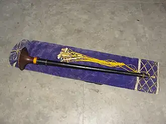 This instrument is "among the world's loudest non-brass acoustic instruments".[3] It is a wind instrument partially similar to the North Indian shehnai, but much longer, with a hardwood body, and a large flaring bell made of wood or metal.
