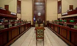 The House of Representatives is the Lower House. It consists of 31 members, who are elected by the people in a general election every five years.[3] Each member represents one constituency. Members of the House include both members of the ruling party and members of the opposition who won their seats in general election. The House of Representatives is presided over during their meetings by a speaker. The speaker's main responsibility is to maintain order and control. The House of Representatives passes bills, debates national issues and approves government budget.