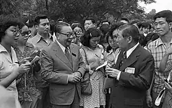 Taihoku college classes consisted of "lectures" taught by professors, assistant professors, and other faculty. By 1945, it had five colleges with a total of 114 lectures.[16] The university's first president was Japanese historian Taira Shidehara (1928–1937), a graduate of Tokyo Imperial University who was appointed to the presidency on March 16, 1928.[19] Japanese scholar Toyohachi Fujita (1869–1929) was appointed as the first dean of the Faculty of Literature and Politics while Kintaro Oshima was named the inaugural dean of the Faculty of Science and Agriculture.[12] Enrollment years were shortened during World War II and university functions were limited following the American bombing of Taipei.[20]