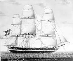 Norge was an East Indiaman of the Danish Asiatic Company. She was taken as a prize by HMS Sceptre at the Cape of Good Hope in January 1808.