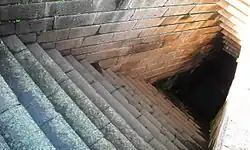 The architecture of the Nuragic holy wells follows the same pattern as that of the nuraghe, the main part consisting of a circular room with a tholos vault with a hole at the summit. A monumental staircase connected the entrance to this subterranean (hypogeum) room, whose main role is to collect the water of the sacred spring. The exterior walls feature stone benches where offerings and religious objects were placed by the faithful. Some sites also had sacrificial altars. Some scholars think that these could be dedicated to Sardus, one of the main Nuragic divinities.