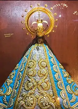 Our Lady of Caysasay (Spanish: Nuestra Señora de Caysasay) is a Roman Catholic image of the Blessed Virgin Mary venerated at the Archdiocesan Shrine of Our Lady of Caysasay in Taal, Batangas, Philippines. The image depicts the Immaculate Conception is believed to be one of the oldest in the country, originally discovered in 1603 by a native man fishing in the Pansipit River. The subsequent Marian apparitions documented by Spanish colonial church leaders were the first in the country; devotees today continue to attribute miracles to the Virgin.[1]