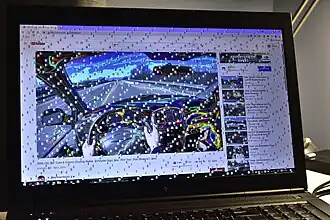 Glitched and garbled display on a workstation laptop with a defective graphics card that underwent extensive overheating from use in a hot environment.