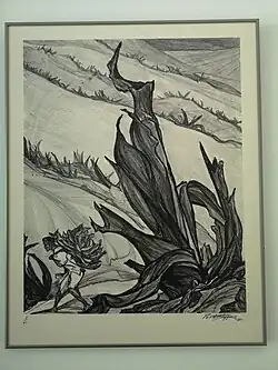 His 1945 mural for the Ship Scalers Union Hall in Seattle is installed in Kane Hall at the University of Washington in Seattle.[7][8] The mural depicts Seattle's Ship Scalers Union's (SSU) history as a strongly anti-racist, anti-discriminatory, and progressive force in social politics.[9]