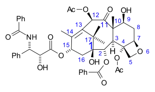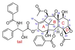 Paclitaxel, with rings labeled and accepted numbering scheme shown.