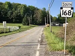 Pennsylvania Route 168 (PA 168) is a highway in Western Pennsylvania that runs for 55 miles (89 km) from PA 18 in Frankfort Springs to PA 208 in Volant. PA 168 intersects or runs concurrently with PA 18 at several points, including in New Castle.