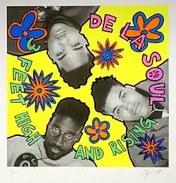 Cover print of De La Soul's 1989 album 3 Feet High and Rising