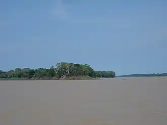 The floodplain holds aquatic vegetation where drainage is poor, successional vegetation, forest mosaics and permanent swamp vegetation.[2] The várzea forests holds more species than várzea on the lower Amazon, but fewer species than in the surrounding terra firme forests. The forest is continuous. The rich understory includes plants of the families Zingiberaceae, Marantaceae and Heliconiaceae.[2] Economically valuable timber trees include Carapa guianensis, Iryanthera surinamensis, Ceiba pentandra and Calycophyllum spruceanum. On the upper levees the most common trees are Ceiba pentandra, Hura crepitans and Parinari excelsa. On the lower levees common trees include Pterocarpus santalinoides, Eschweilera albiflora, Piranhea trifoliata and Neoxythece elegans.[2]