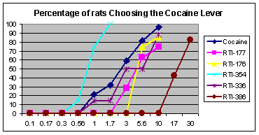 Lower reinforcing strength of the phenyltropane cocaine analogs RTI-336 and RTI-177 compared to cocaine in nonhuman primates.
