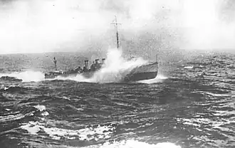 The Ragnar-class destroyer was an improved version of the preceding Wale.[1] The ships normally displaced 350 long tons (360 t) and 416 long tons (423 t) at full load. They measured 66.1 meters (216 ft 10 in) long overall with a beam of 6.3 meters (20 ft 8 in), and a draft of 1.8 meters (5 ft 11 in). The Ragnars were propelled by two 4-cylinder vertical triple-expansion steam enginess, each driving one three-bladed propeller using steam from four Yarrow boilers. The engines were designed to produce a total of 7,200 indicated horsepower (5,400 kW) for an intended maximum speed of 30 knots (56 km/h; 35 mph). On Vidar's sea trials, she reached 31.3 knots (58.0 km/h; 36.0 mph). The ships carried enough coal to give them a range of 1,400 nautical miles (2,600 km; 1,600 mi) at 12 knots (22 km/h; 14 mph). The ships' crew numbered 69.[2][3]
