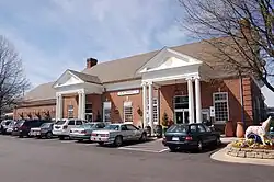 Opened in 1950, by Southern Railway, the Colonial Revival station was located at 320 West Cabarrus Street, two blocks south of the current Raleigh Union Station. Until the early 1950s the Southern Railway ran the Carolina Special and two other trains daily from Greensboro, through Raleigh, to Goldsboro, where an Atlantic Coast Line Railroad connection could be made to Wilmington. The Carolina Special western destination was Cincinnati.[19] In 1964, Southern withdrew its final trains from Raleigh, local trains to Greensboro to the west and Goldsboro to the east,[20] and then closed the station. The station was repurposed for storage, leaving the old Seaboard station as the sole passenger rail station in Raleigh for the next 21 years.