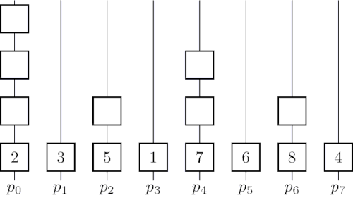 This algorithm represents a widely spread method to handle inputs where is a power of two. The reverse procedure is often used for broadcasting elements.[6][7][8]
