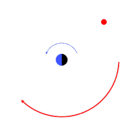 Retrograde orbit: the satellite (red) orbits in the direction opposite to the rotation of its primary (blue/black)