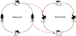 Arbovirus in the urban cycle jumping to the wild maintenance cycle due to the Aedes aegypti vector infecting non-human primates or viremic individuals infecting the wild mosquito.