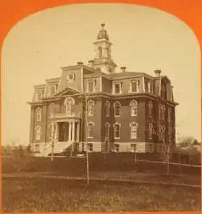 A school was opened in 1867 in the old town hall. A tract of land of nearly 16 acres (6.5 ha) was secured, and on July 4, 1868, the corner stone of the seminary building was laid. In 1869, the structure was completed. The seminary went into operation in September of the same year.[3]