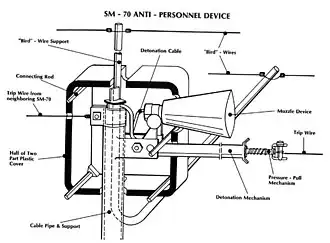 The SM-70 (Splittermine Modell 1970) is an East German directional fragmentation antipersonnel mine developed specifically to combat Republikflucht (defection) across the Inner German Border (Grenze) into West Germany.[1][2]