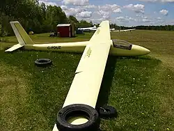 Schweizer SGS 1-34 showing wing planform. The tire is used to secure the wing in windy conditions
