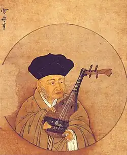 Sesshū Tōyō (雪舟 等楊; c. 1420 – August 26, 1506), also known simply as Sesshū (雪舟; Japanese pronunciation: [seꜜɕ.ɕɯː][1]), was a Japanese Zen monk and painter who is considered a great master of Japanese ink painting. Initially inspired by Chinese landscapes, Sesshū's work holds a distinctively Japanese style that reflects Zen Buddhist aesthetics.[2] His prominent work captured images of landscapes, portraits, and birds and flowers paintings, infused with Zen Buddhist beliefs, flattened perspective, and emphatic lines.[3]