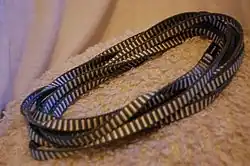 Slings come both sewn to length and assembled from loose webbing knotted as desired. Common sewn lengths include 10 centimetres (3.9 in), 30 centimetres (12 in), 60 centimetres (24 in), 120 centimetres (47 in) and 240 centimetres (94 in). They are available in widths of 6–20 millimetres (0.24–0.79 in). Webbing for slings, also known as tape, is sold off the reel, cut to length with a hot knife to prevent fraying, and tied. The most common knot used for nylon slings are water knots and double fisherman's knots. Dyneema/Spectra slings are usually sewn not tied due to very high lubricity which leads to poor knot-holding ability and has led to the recommendation to use the triple fisherman's knot rather than the traditional double fisherman[3]