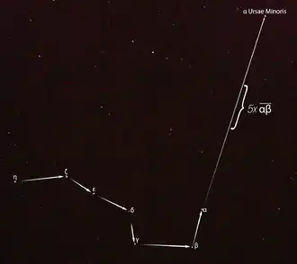 One reportedly coded Underground Railroad song is "Follow the Drinkin' Gourd".[1] The song's title is said to refer to the star formation (an asterism) known in America as the Big Dipper and in Europe as The Plough. The pointer stars of the Big Dipper align with the North Star. In this song the repeated line "Follow the Drinkin' Gourd" is thus often interpreted as instructions to escaping slaves to travel north by following the North Star, leading them to the northern states, Canada, and freedom: The song ostensibly encodes escape instructions and a map from Mobile, Alabama, up the Tombigbee River, over the divide to the Tennessee River, then downriver to where the Tennessee and Ohio rivers meet in Paducah, Kentucky.[2]