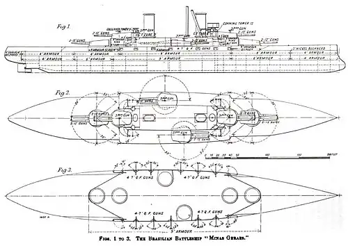 - "Brazilian Battleship 'Minas Geraes'—Most Powerful Fighting Ship Afloat." Scientific American 99, no. 24 (1908): 428–29. OCLC 1775222.
