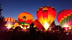 The festival was not held from 2007 to 2009, but returned in 2010 with balloon rides, free live music, and a variety of food vendors.[4] The 2016 Spirit of Boise Balloon Classic inspired emerging artist Betsie Richardson to paint a Boise traffic control box. The work, titled Lift off at the Spirit of Boise Balloon Classic, has been featured by the Boise City Department of Arts and History.[5] The 2018 edition of the event featured over 40 hot air balloons.[6] The event was cancelled for a fourth time in 2020, deferring the 27th edition to 2021.