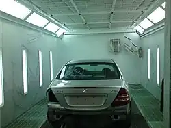 A car in a spray booth