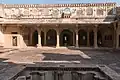 There is Badal Mahal (Palace of Clouds), right above Zenana Mahal. The Badal Mahal, built at the highest point in the fort, also has a fine collection of paintings on its walls. It is said that during the monsoons, the rain clouds were known to float through the courtyards of the palace. The palace is said to have been built by Rao Bhoj.[4]