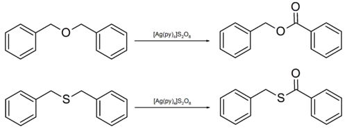 3. ^ a b c Habib Firouzabadi, Peyman Salehi, Iraj Mohammadpour-Baltork. "Tetrakis(pyridine)silver(II) Peroxodisulfate, [Ag(py)4]S2O8, a Reagent for the Oxidative Transformations" Bull. Chem. Soc. Jpn., Vol 65, p 2878-2880. (1992).