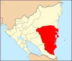 The South Caribbean Coast Autonomous Region[a] is one of two autonomous regions in Nicaragua. It was created along with the North Caribbean Coast Autonomous Region by the Autonomy Statute of 7 September 1987 through a division of the former Zelaya Department. It covers an area of 27,260 km2 (10,530 sq mi) and has a population of 420,935 (2021 estimate). The capital is Bluefields. Bordering the Caribbean Sea, it contains part of the region known as Moskitia.