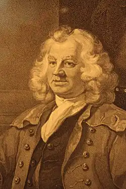 In his own words, Coram said he "descended from virtuous good parentage on both sides." His mother died when he was very young in 1671.[15] There is not much information on his father but he is believed to have been a master mariner.[1] While in Massachusetts, he met and married his wife Eunice Waite. They were married in 1700 and had a happy marriage lasting until her death 40 years later. Despite Coram's dedication to the children of the Foundling Hospital, they did not have any children of their own.[16]