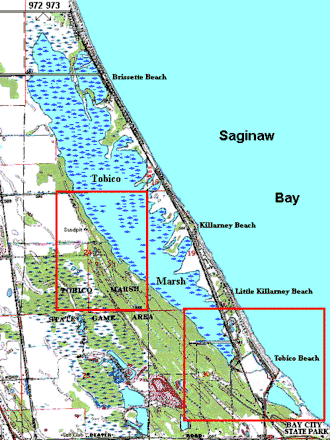 Tobico Marsh, located just north of Bay City, Michigan, is part of the Bay City Recreation Area. Tobico Marsh was designated as a registered National Natural Landmark in 1976 because of its large size, relatively undisturbed condition and variety of aquatic plant life. With nearly 2,000 acres (8.1 km2) of wetland woods, wet meadows, cattail marshlands and oak savannah prairies, Tobico Marsh is one of the largest remaining freshwater, coastal wetlands on the Great Lakes.[1]