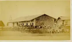 Paraguay had now made war on the much more populous Empire of Brazil, on Argentina (also more populous),[63] and threatened the Colorado faction of Uruguay, which by now had come into power. The three countries had been accustomed to thinking about Paraguay as a backward upstart and were outraged.[64] Their foreign ministers met in Buenos Aires and negotiated the Treaty of the Triple Alliance.